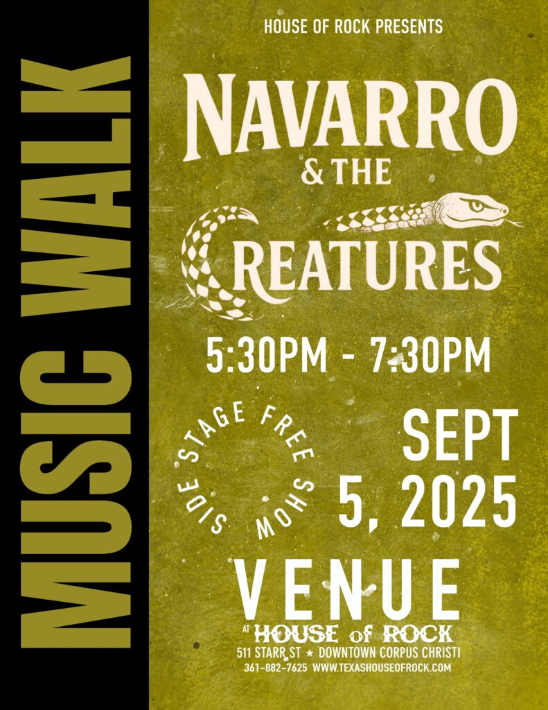 NAVARRO AND THE CREATURES take the side stage here at House of Rock to kick off music walk! Don’t miss it!
