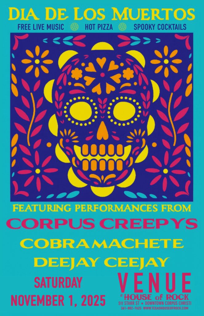 Día de los Muertos at House of RockCelebrate Día de los Muertos in true rock ’n’ roll fashion at House of Rock! Join us for a free night of music, culture, and community featuring live performances by Corpus Creepys, Cobra Machete, and Deejay Ceejay spinning throughout the night. Enjoy the energy, honor the tradition, and […]
