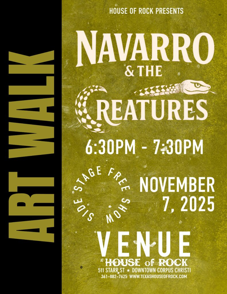 Catch NAVARRO AND THE CREATURES in the middle bar here at House of Rock during ART WALK, the official pre-show before the Broadway Rave!